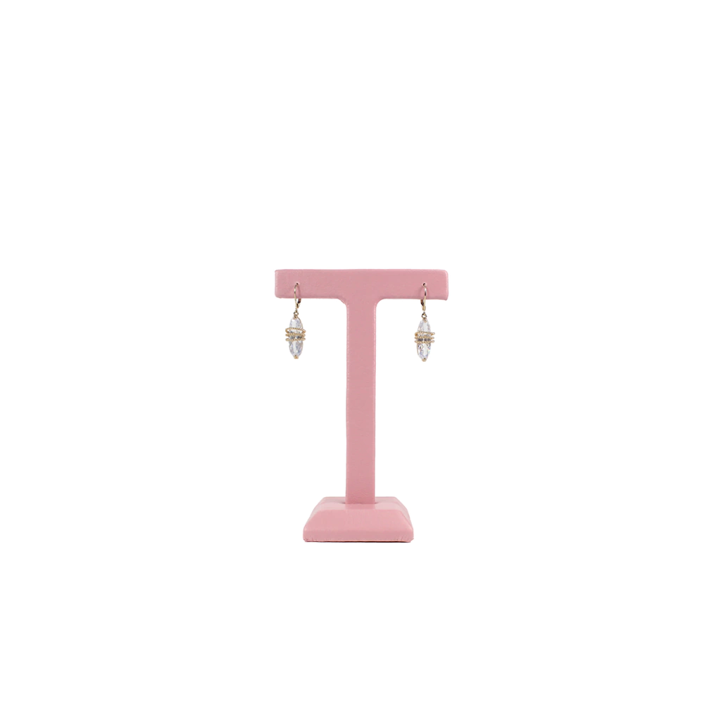 ¡La manera más elegante de exhibir tus aretes con distinción! Este exhibidor en forma de T, confeccionado en vinipiel de alta calidad, es perfecto para resaltar 1 par de aretes, dándole protagonismo a cada pieza.
