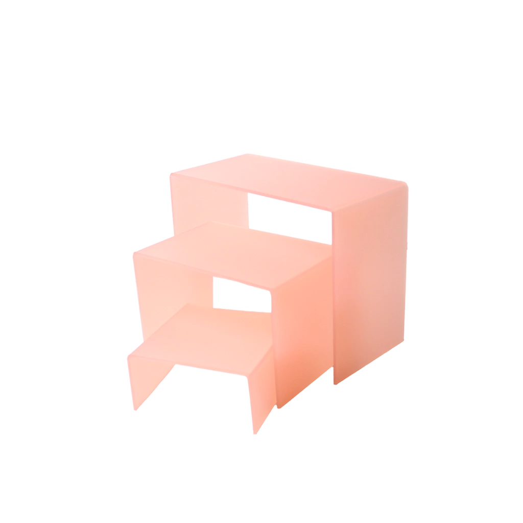 Agrega un toque moderno y funcional a tu exhibición con este set de 3 mesitas de acrílico de distintos tamaños. Estas bases son la solución perfecta para jugar con alturas, permitiendo destacar cada producto y crear una composición visual dinámica en tu vitrina o mostrador.