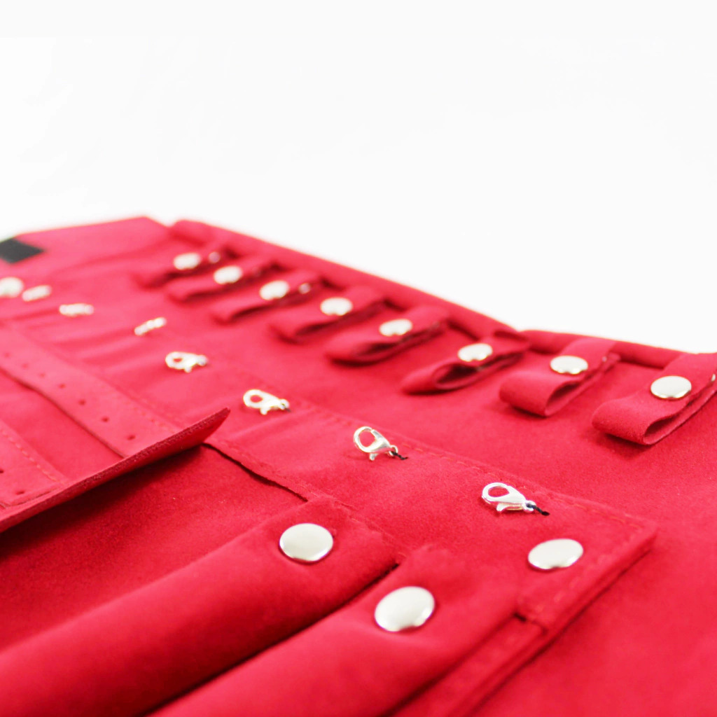 ¡La solución perfecta para llevar tu colección completa a donde quieras! 💍💫 Esta práctica manta mixta está fabricada con un hermoso y elegante vinipiel color negro por fuera y un suave terciopelo interior rojo, ideal para proteger tus piezas favoritas.